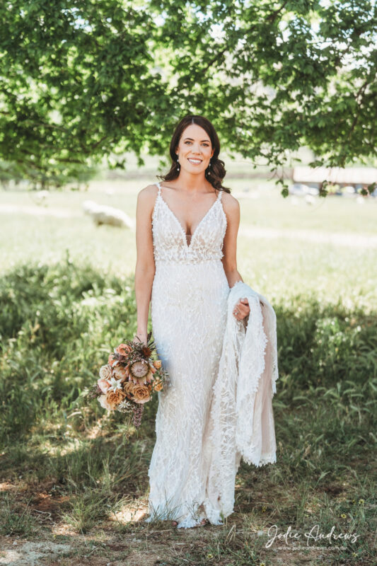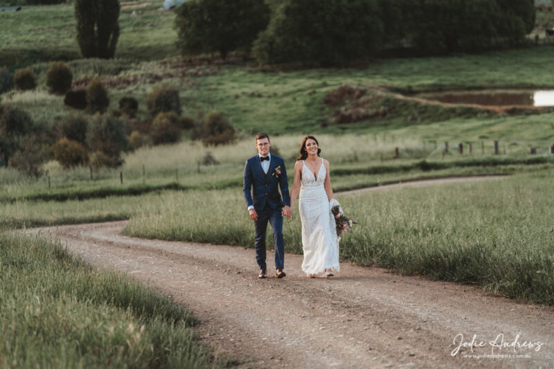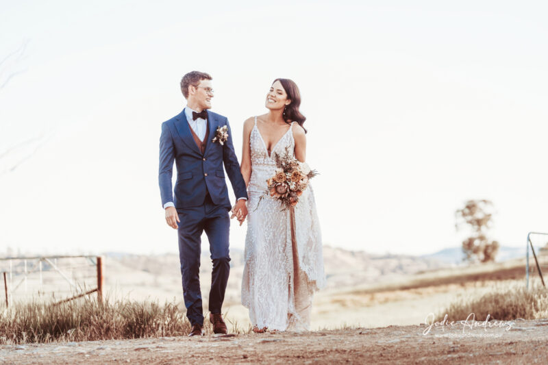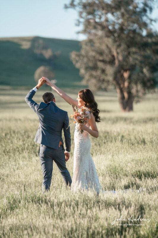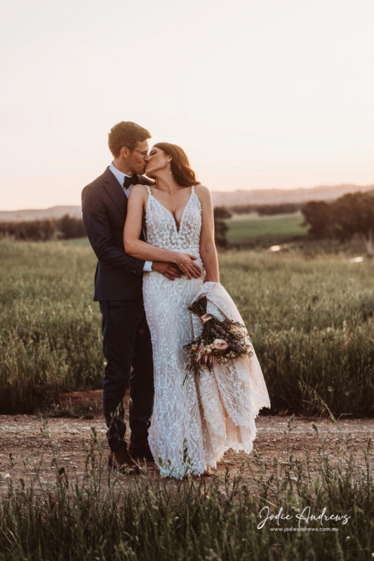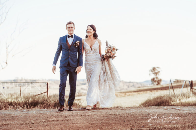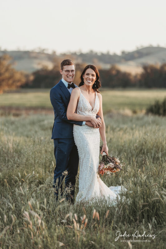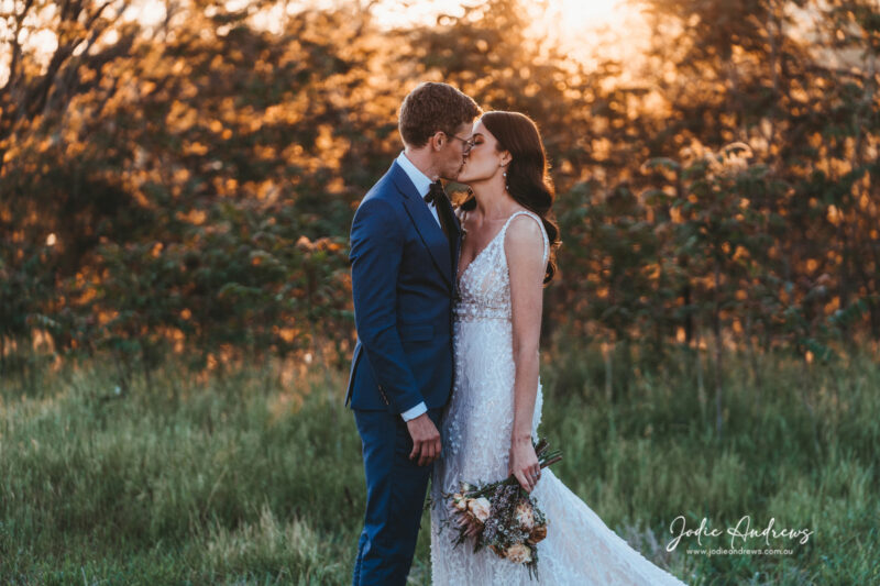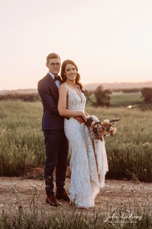 Nestled in the heart of Gundagai countryside, Kimo Estate set the perfect scene for their special day. With its breathtaking views and rustic charm, it was the ideal backdrop for their love story. From the moment Annalise walked down the aisle, to the excitement on Fraser’s face, and everything in between had everyones heart melting! The day finished with a stunning sunset, heartfelt speeches about unforgettable moments and an epic dance off!